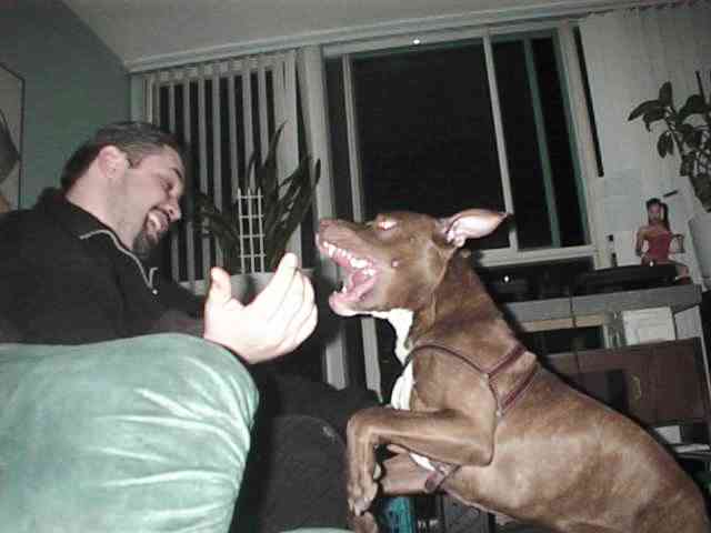 Without delay, my girlfriend called in the animal control and K9 capture unit. After 3 men where badly mangled by the dogs fangs and 1 left for dead, one K9 control officer got a poison injected. This injection is the same used in capital punishment in some states. Capone's death was slow, or so it seemed. The Pit-bull keep fighting off the foreign chemical in his bloodstream. 13 hours later, Capone shook off the poison and killed 7 more including my brother Antonio. He was ripped in half from the mid chest area. Antonio also did not believe in the striking capabilities of the Massisteria, brimstoned, death bringith, blood drinking death machine named "CAPONE".... isss a good boy.